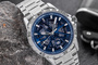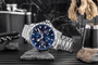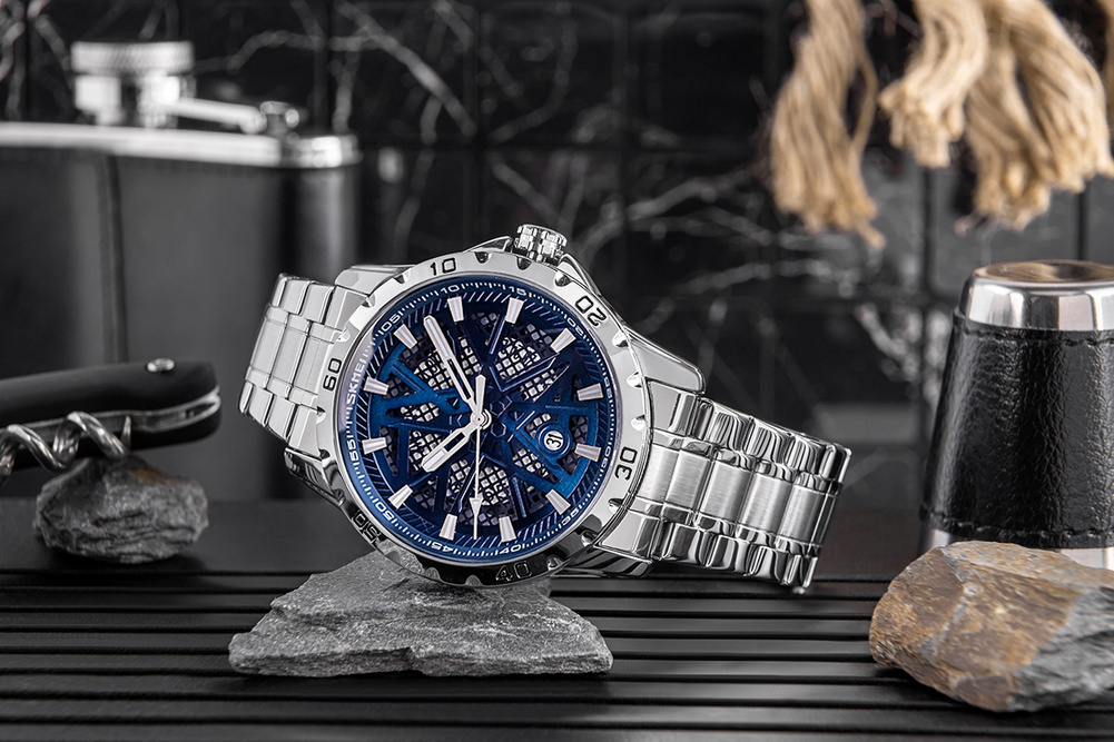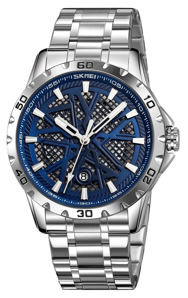 Zegarek Skmei 9337 to czysta, męska elegancja z pazurem – przyciąga uwagę wyrazistą, ale zarazem subtelną kolorystyką. Srebrna koperta i bransoleta tworzą solidną, klasyczną podstawę, która idealnie kontrastuje z trójwymiarową tarczą w kolorze metalicznego granatu. Taka tarcza z elementami 3D dodaje głębi i charakteru, a srebrne, fluorescencyjne indeksy i wskazówki sprawiają, że zegarek pozostaje czytelny o każdej porze.