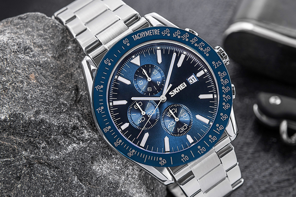 Design zegarka Skmei 9253 nawiązuje do klasycznych i sportowych modeli ekskluzywnych marek, takich jak TAG Heuer Carrera i Rolex Daytona. Cechuje go elegancki wygląd, inspirowany chronografami o sportowym charakterze, gdzie stalowa koperta z wyrazistym bezlem nadają mu profesjonalnego, wyrazistego wyglądu. Od teraz ten luksusowy design możesz mieć na swoim nadgarstku.