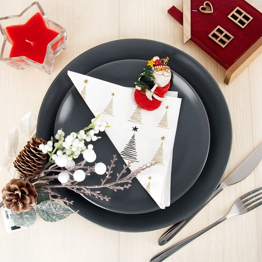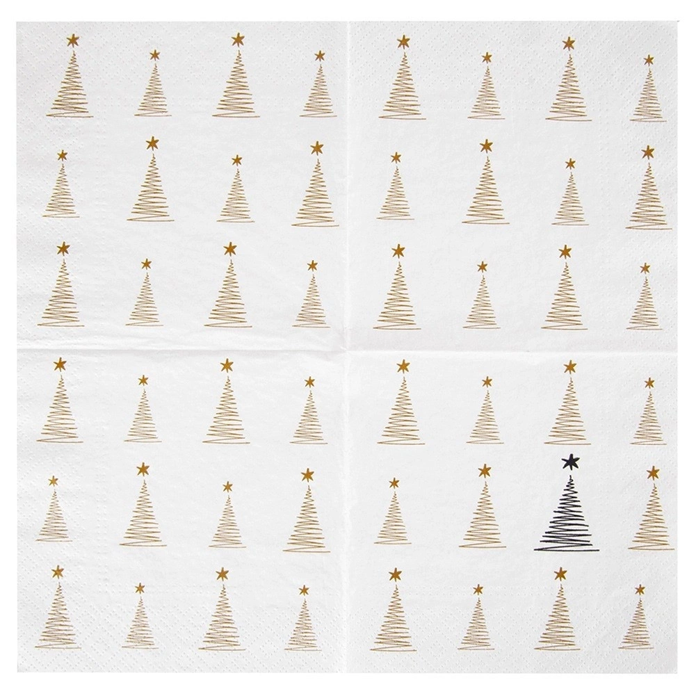 - Świąteczny motyw choinki - Wykonane z papieru w kolorze białym z eleganckim złotym nadrukiem choinek, które wprowadzą ciepły, świąteczny nastrój na Twoim stole.