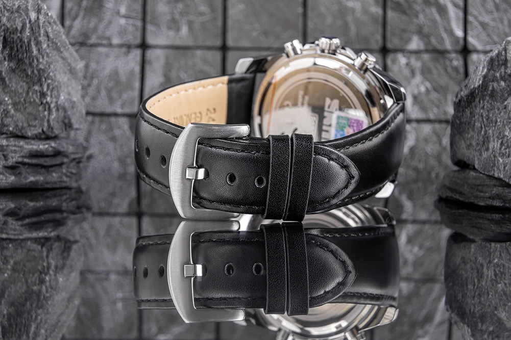 Subtarcze chronografu są nie tylko praktyczne, ale też świetnie zaprojektowane. Harmonijnie wkomponowane w tarczę, dodają jej głębi i sportowego charakteru. Dzięki dedykowanym subtarczom możesz mierzyć czas w sekundach i minutach z chirurgiczną dokładnością. To funkcja, która sprawdzi się zarówno podczas intensywnych treningów, jak i w codziennych wyzwaniach – odmierz czas na spotkania, gotowanie czy sportowe wyzwania. Datownik to subtelny, ale niezwykle funkcjonalny akcent, który przypomina, że precyzja dotyczy nie tylko minut i sekund, ale także dni. Wkomponowany dyskretnie na tarczy, jest jak sekretna wskazówka – zawsze na swoim miejscu, gotowy, by przypomnieć o biegu czasu.