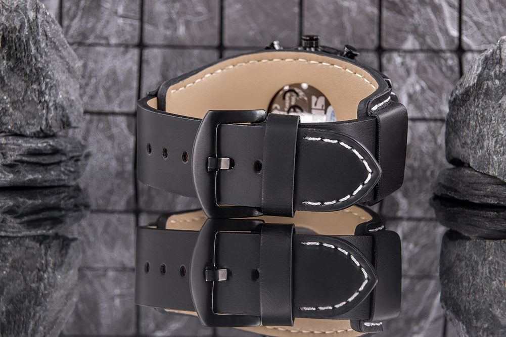 Model emanujący męską siłą i nienachalną elegancją. Czarna tarcza o dynamicznym wzornictwie i skórzany pasek z wyrazistymi przeszyciami podkreślają jego charakter – solidny, a jednocześnie pełen klasy. To nie tylko czasomierz, ale także manifest stylu dla mężczyzny, który wie, czego chce.
