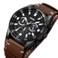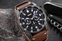 Wyjątkowa tarcza tego modelu zachwyca dynamicznym wzornictwem – wielopoziomowa konstrukcja, subtarcze chronografu i wyraziste indeksy tworzą prawdziwe dzieło sztuki dla mężczyzny z charakterem. Całość dopełnia nietuzinkowy pasek z wysokogatunkowej skóry, ozdobiony mocnymi przeszyciami, które nadają mu surowości i wyrazistości. Z prawej strony tarczy znajdziesz unikalny wskaźnik dnia i nocy – świetny gadżet dla tych, którzy cenią sobie kontrolę nad czasem w każdej godzinie dnia. To zegarek, który nie tylko odmierzają czas, ale podkreśla Twój styl i osobowość.