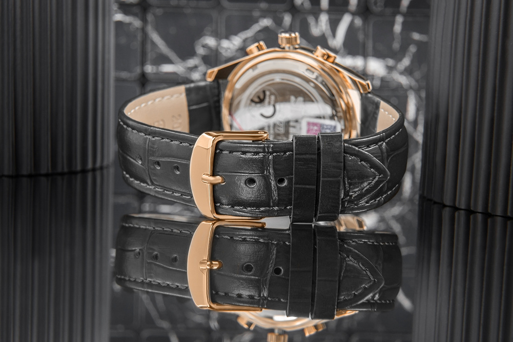 Chronograf pozwala precyzyjnie mierzyć czas, niezależnie od tego, czy wyznaczasz sobie nowe granice, czy planujesz perfekcyjny harmonogram. Datownik dba o to, byś nigdy nie stracił orientacji w codziennym biegu, a wskaźnik 24-godzinny dodaje praktyczności, jakiej oczekuje nowoczesny mężczyzna. To zegarek, który łączy funkcjonalność z pewnym siebie stylem – bo życie wymaga precyzji, a Ty masz ją zawsze pod ręką.