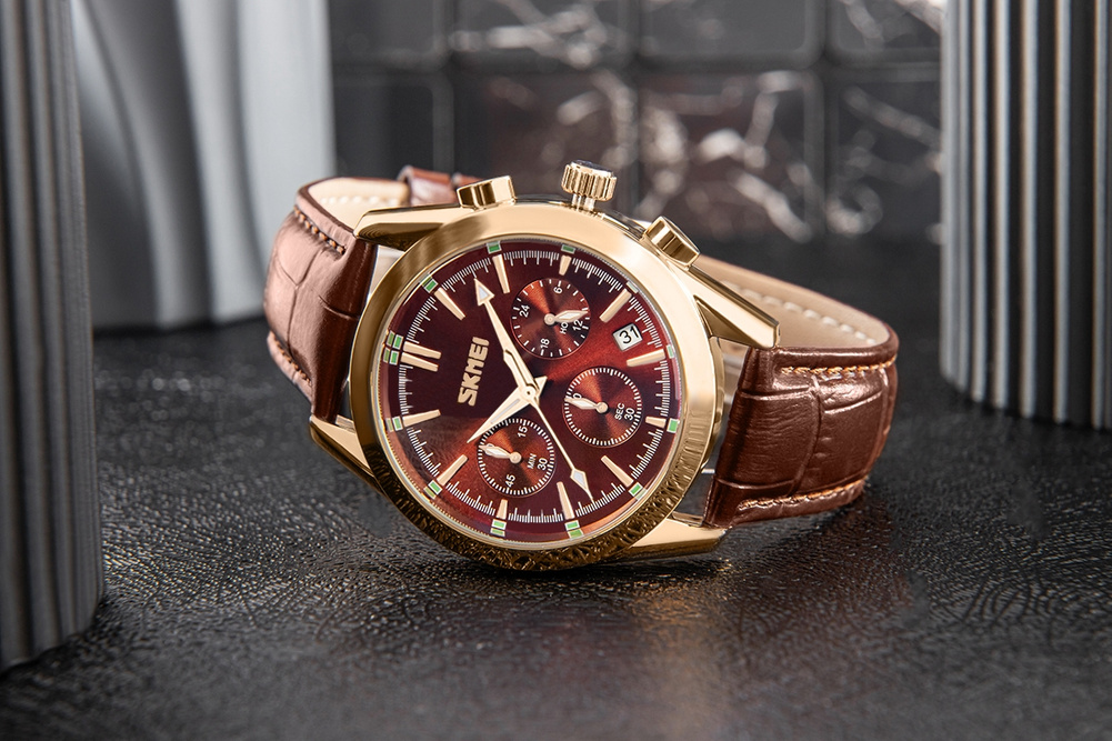 Skmei 9127 to zegarek, który łączy w sobie klasyczną duszę z nowoczesnym charakterem. Funkcje takie jak chronograf, datownik oraz wskazanie 24-godzinne sprawiają, że ten model to nie tylko ozdoba, ale też praktyczny towarzysz dla mężczyzny ceniącego klasę i precyzję.
