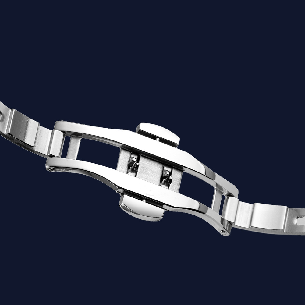 Bransolety zegarków Skmei wykonane z najwyższej jakości stali nierdzewnej, łączą w sobie surową wytrzymałość z elegancją, która przyciąga spojrzenia. Ich solidna konstrukcja to nie tylko symbol niezawodności, ale też pewność, że zegarek będzie trzymać się mocno na nadgarstku, bez względu na wyzwania dnia. Precyzyjne, bezpieczne zapięcie.