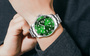 Intensywna, głęboka zieleń przyciąga uwagę od pierwszego spojrzenia. Jej wykończenie delikatnym, satynowym efektem pod światło nadaje elegancji, jednocześnie podkreślając jej sportowy charakter. Wyraziste, stalowe indeksy o wypełnieniu fluorescencyjnym zapewniają perfekcyjną czytelność zarówno w dzień, jak i w nocy. Centralnym punktem jest datownik z wypukłym szkłem powiększającym – detal, który dodaje zegarkowi klasy i nawiązuje do najlepszych wzorców w świecie czasomierzy. To tarcza, która łączy elegancję, wyrazistość i praktyczność w jednym, będąc idealnym wyborem dla mężczyzny, który wie, czego chce.