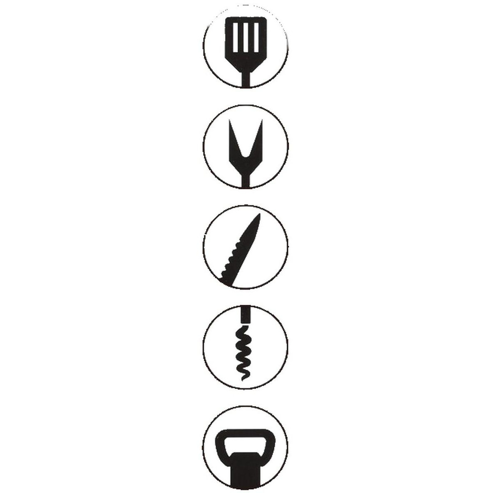 - W zestawie: szpatułka, widelec, nóż, otwieracz do butelek, korkociąg