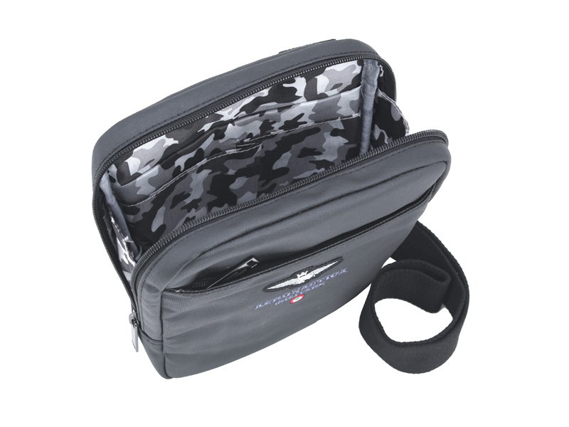 Torba,saszetka na ramię włoskiej marki Aeronautica Militare z kolekcji NEW CITY. Wykonana z wysokiej jakości wodoodpornego woskowanego płótna . Została zaprojektowana dla aktywnych osób, ceniących sobie jakość i wygodę. Komora główna, z praktycznym organizerem zamykana na suwak wysokiej klasy z dużym, praktycznym, metalowym uchwytem. Przednia pozioma kieszeń zamykana na suwak. Z tyłu pozioma kieszonka. W środku znajduje się elegancka podszewka wysokiej jakości. Do noszenia na ramieniu służy wygodny, regulowany pasek. Przód zdobi charakterystyczne logo Aeronautica Militare Frecce Tricolori. Torba zaprojektowana w praktyczny i funkcjonalny sposób cechuję się niewielką wagą i starannym wykończeniem.