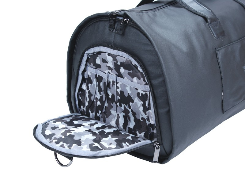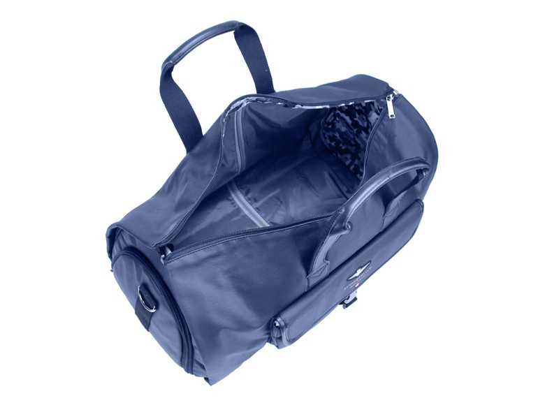 Duża torba na ramię włoskiej marki Aeronautica Militare z kolekcji NEW CITY. Wykonana z wysokiej jakości wodoodpornego woskowanego płótna. Doskonale sprawdzi się jako torba podróżna lub sportowa na siłownię. Dużym atutem torby jest możliwość jej całkowitego złożenia na płasko dzięki wszytym suwakom. Komora główna o dużej pojemnośći zapinana na suwak wysokiej klasy z dużym, praktycznym, metalowym uchwytem. Z przodu kieszeń zamykana na klapkę zapinaną na klamrę. Z tyłu pozioma kieszonka na suwak. Po bokach torby znajdują się kieszenie zapinane na suwaki. Jedna z organizerem , druga z miejscem na obuwie. Do noszenia na ramieniu służy wygodny, regulowany, odpinany pasek. Zamiennie można nosić torbę w ręce do czego służą dwie wygodne rączki. Przód torby zdobi charakterystyczne logo Aeronautica Militare Frecce Tricolori.