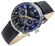 Srebrna koperta, solidna i lśniąca, doskonale kontrastuje z głębokim, metalicznym granatem tarczy, który przywołuje na myśl nocne niebo w czasie lotu sterowcem. Wyraziste białe cyfry i indeksy, idealnie komponujące się z białymi wskazówkami i sekundnikiem, zapewniają doskonałą czytelność i podkreślają lotniczy charakter zegarka.Czarny pasek, subtelnie przełamany brązową nitką, dodaje całości wyrafinowania i nawiązuje do rzemieślniczego kunsztu, łącząc elegancję z trwałością. Srebrna sprzączka i koronka dopełniają kompozycji, nadając zegarkowi harmonii i spójności w stylistyce. Idealny wybór dla tych, którzy pragną nosić na nadgarstku klasyczny czasomierz w najlepszym możliwym wydaniu.