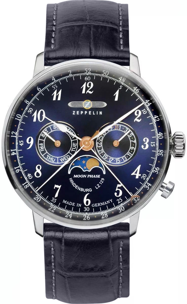 Wybierając zegarek Zeppelin, sięgasz po coś więcej niż czasomierz – to historia zamknięta w eleganckiej formie, precyzja w każdym detalu i ponadczasowy luksus, który będzie Ci towarzyszył przez lata. Model Zeppelin 7036-3 to prawdziwy ukłon w stronę dawnej epoki, gdzie metaliczny granat tarczy i kontrastowe, śnieżnobiałe detale budzą wspomnienia wielkich lotniczych wypraw. Dzięki funkcjom takim jak wskaźnik faz księżyca, kalendarz i dzień tygodnia, ten model staje się nie tylko symbolem ponadczasowego stylu, ale także praktycznym towarzyszem każdego dnia.
