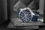 Na tarczy zegarka znajdują się oznaczenia rozbudowanego wskazania daty - dzień miesiąca, dzień tygodnia i czas w systemie 24godzinnym. Chronografy nie tylko wzbogacają funkcjonalność, ale także znacząco zwiększają prestiż tego modelu. Chronograf to jeden z najbardziej pożądanych elementów w zegarkach premium, a jego obecność świadczy o skomplikowanej mechanice i precyzji wykonania.
