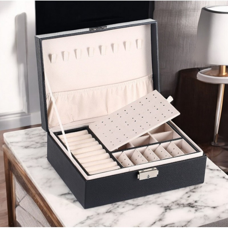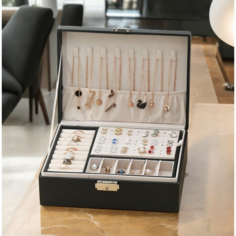 Bardzo elegancka i wspaniale prezentująca się szkatułka na biżuterię Bardzo funkcjonalna z przegródkami oraz miejscami na naszyjniki oraz zegarki