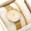 Komplet prezentowy damski, który zachwyca swoją elegancją i ponadczasowym stylem. Zawiera zegarek ze stali szlachetnej marki Paul Lorens w kolorze złotym, z piękną tarczą w tym samym kolorze, która subtelnie podkreśla jego klasyczny charakter. Złota koperta zegarka zdobiona kryształkami, dodaje całości wyjątkowego blasku. Zegarek charakteryzuje się także wodoszczelnością WR30, co sprawia, że jest praktyczny i funkcjonalny. Do kompletu dołączona jest elegancka pleciona bransoletka w kolorze złotym, która perfekcyjnie komponuje się z zegarkiem. To idealny wybór na prezent – elegancki, piękny i niezapomniany..