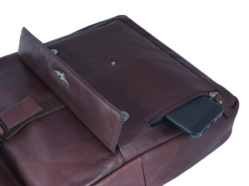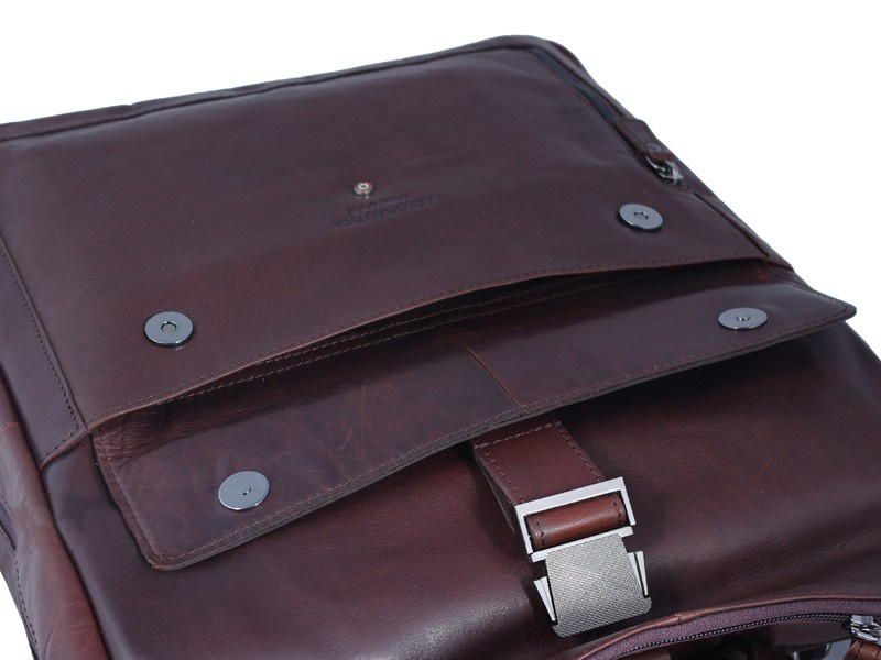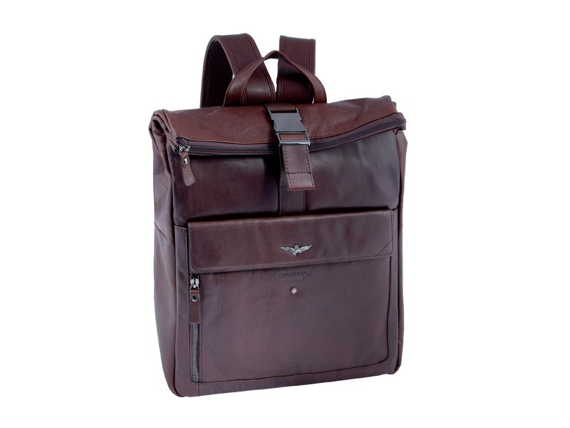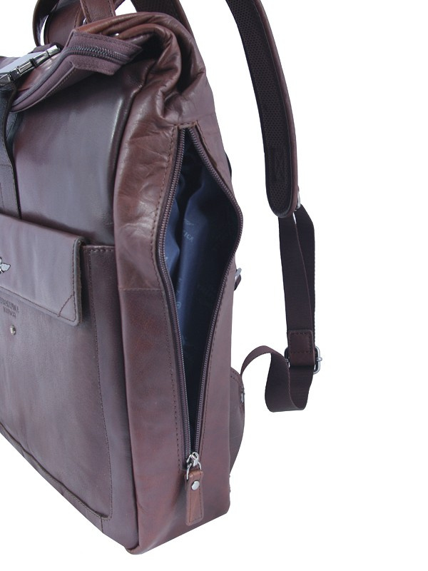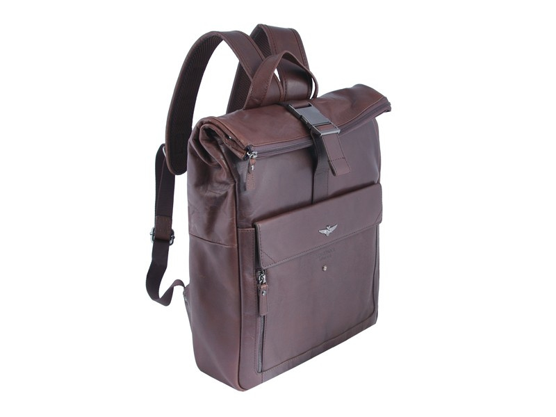 Plecak miejski typu rolltop włoskiej marki Aeronautica Militare z kolekcji Vintage. Wykonany z wysokiej jakości skóry naturalnej. Przeznaczony dla osób ceniących niepowtarzalny komfort i styl. Plecak jednokomorowy. Pojedyncza komora główna o dużej pojemności zapinana na zatrzaski i suwak. Od góry rolowana do potrzebnej wysokości , zapinana na klamrę. Z przodu pod klapą znajduje się duża kieszeń pozioma zapinana na zatrzaski. W środku znajduje się elegancka podszewka. Do noszenia na plecach służą wygodne, regulowane szelki. Do noszenia w ręku - uchwyt w górnej części. Metalowe detale z charakterystycznym logo oraz wytłoczony napis Aeronautica Militare stanowią stylowy akcent przyciągający uwagę. Plecak zaprojektowany w praktyczny i funkcjonalny sposób cechuję się niewielką wagą i starannym wykończeniem.