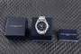 Na tarczy zegarka znajdują się oznaczenia rozbudowanego wskazania daty - dzień miesiąca, dzień tygodnia i czas w systemie 24godzinnym. Chronografy nie tylko wzbogacają funkcjonalność, ale także znacząco zwiększają prestiż tego modelu. Chronograf to jeden z najbardziej pożądanych elementów w zegarkach premium, a jego obecność świadczy o skomplikowanej mechanice i precyzji wykonania. Stylowy wygląd przycisków chronografu oraz efektowna koronka sprawia, że zegarek zyskuje na atrakcyjności, a jego wartość wzrasta.