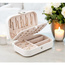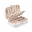 Funkcjonalna szkatułka z przegródkami oraz miejscami na naszyjniki, kolczyki i pierścionki.