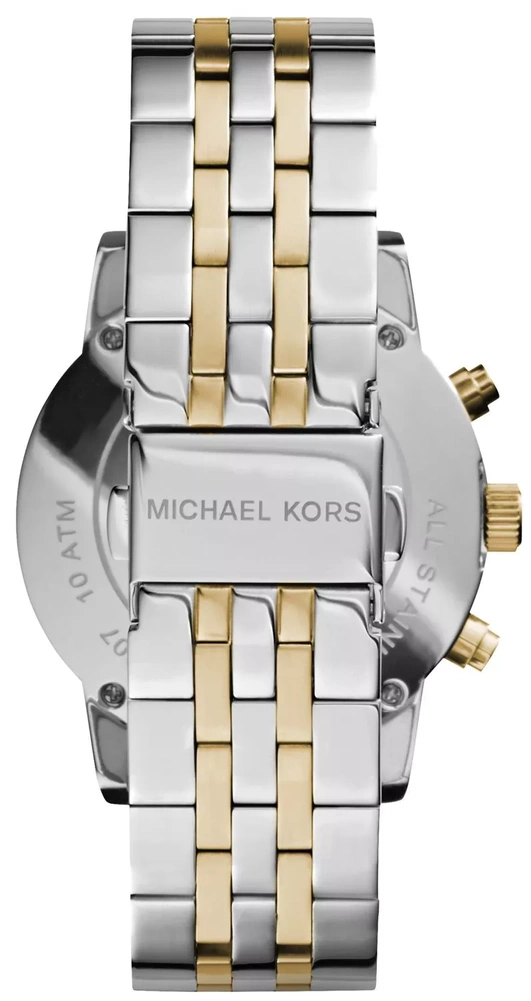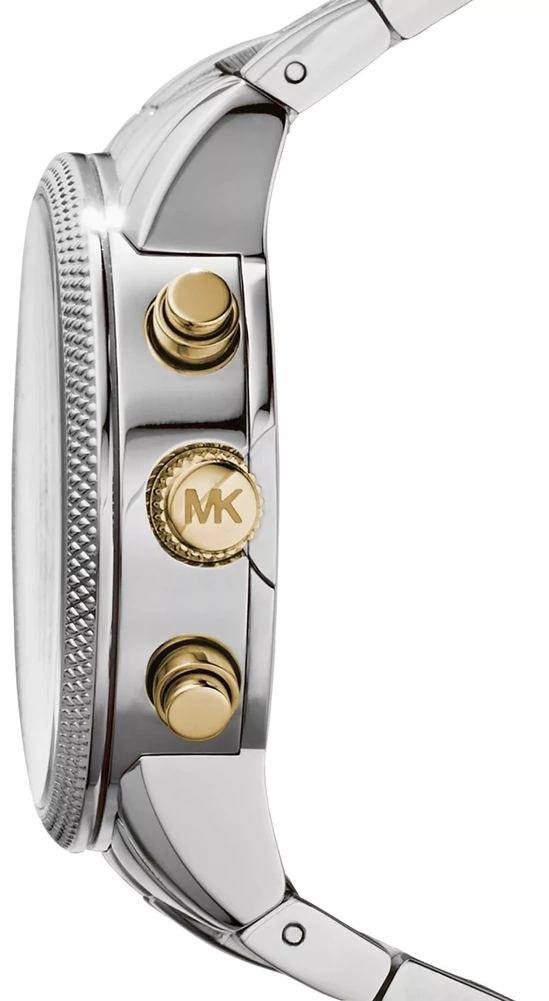Zegarek Damski Michael Kors MK5057 - RITZ to stylowy, klasyczny model dla każdej kobiety. Zegarek ten został wykonany w całości ze stali szlachetnej w kolorze srebra i złota, co gwarantuje wieloletnią odporność na zniszczenie. Za niezawodne działanie urządzenia odpowiada dokładny mechanizm kwarcowy zasilany baterią.