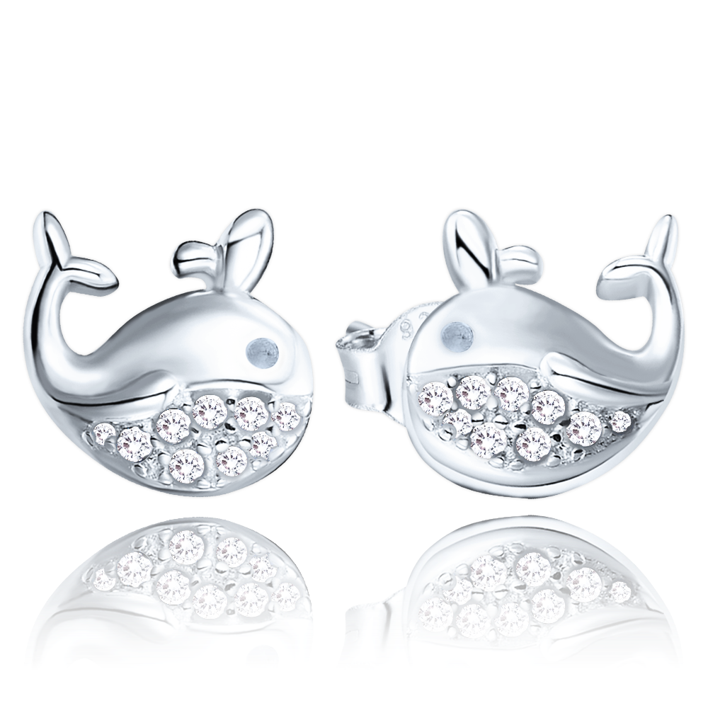 MINET Kolczyki srebrne wieloryby z białymi cyrkoniami