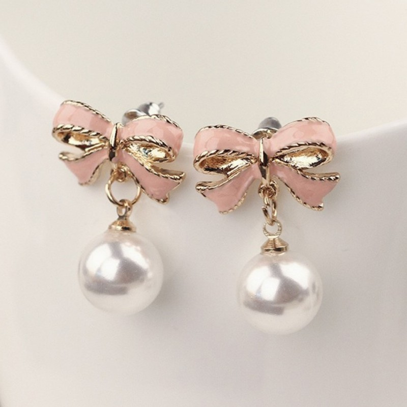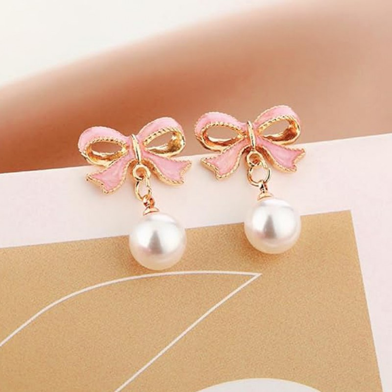 Kolczyki sztuczne perłowe kule z kokardkami Będą stanowić piękne uzupełnienie eleganckiej kreacji jak i codziennego stroju. Zapięcie: sztyft Wymiary: 1,9cm x 2,2cm Wymiary kartonika: 10cm x 8cm Waga: 5g netto/ 10g brutto Biżuteria antyalergiczna, nie zawiera niklu ani chromu. Nie moczyć! Unikać kontaktu z wodą! A wtedy posłuży bardzo długo!