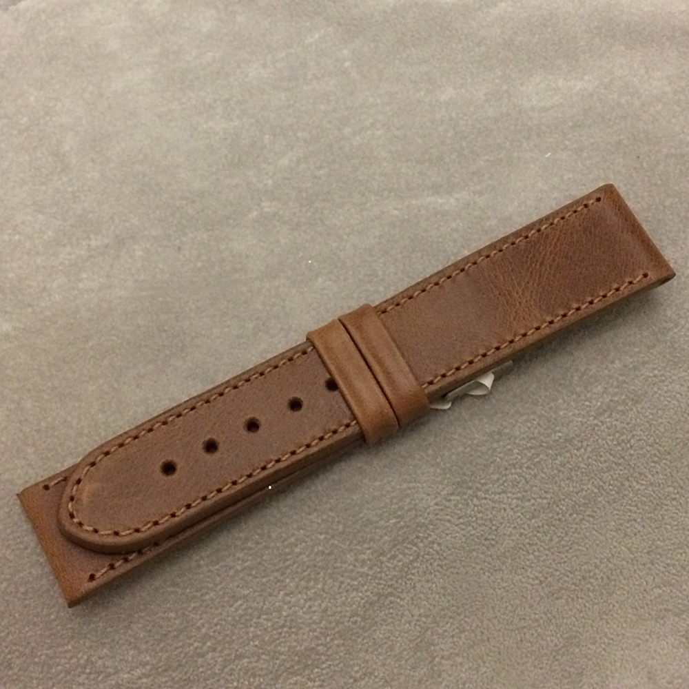 Hiszpańska skóra "Top Grain", z której wykonany jest ten pasek, jest często określana jako najlepsza skóra na świecie. Podczas gdy powszechnie dostępne paski skórzane zawierają jedynie sprasowane dolne warstwy skóry (tzw. "Genuine Leather"), w przypadku skóry "Top Grain" wybierane są jedynie najdelikatniejsze i najbardziej wytrzymałe części górnej skóry. Są one następnie cięte na precyzyjne kawałki, barwione organicznie przy użyciu naturalnych barwników i zszywane bawełnianą nicią, aby nadać im sportowy charakter. W słonecznej Hiszpanii, dzięki tej precyzyjnej pracy ręcznej powstają wyjątkowe, trwałe i giętkie paski z najlepszych na świecie materiałów, gotowe nadać Twojemu zegarkowi niepowtarzalny i luksusowy wygląd.