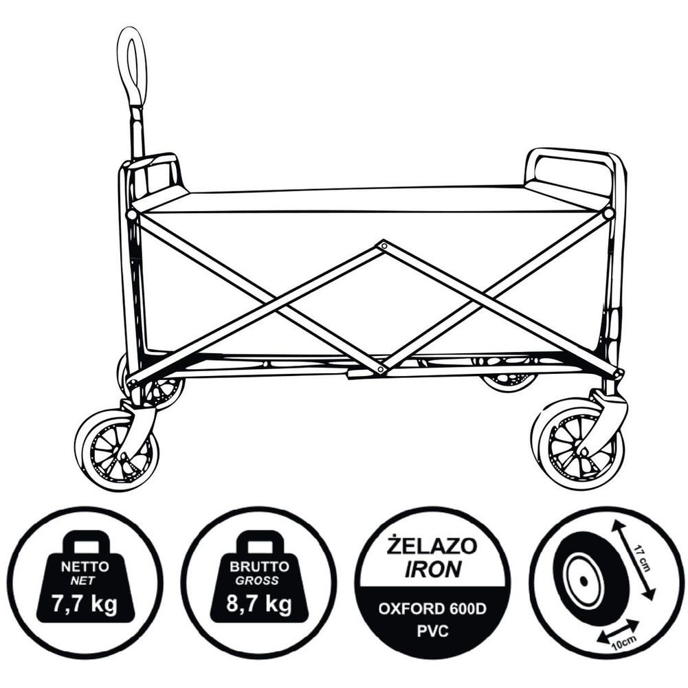 Wózek o pojemności 72 litrów to idealne rozwiązanie dla osób potrzebujących przestrzeni na plażę, piknik, zakupy lub wycieczki. Łączy dużą ładowność z wygodą użytkowania, pozwalając przewieźć wszystko za jednym razem. Dzięki składanej konstrukcji jest łatwy do przechowywania i niezwykle wszechstronny w codziennym zastosowaniu.