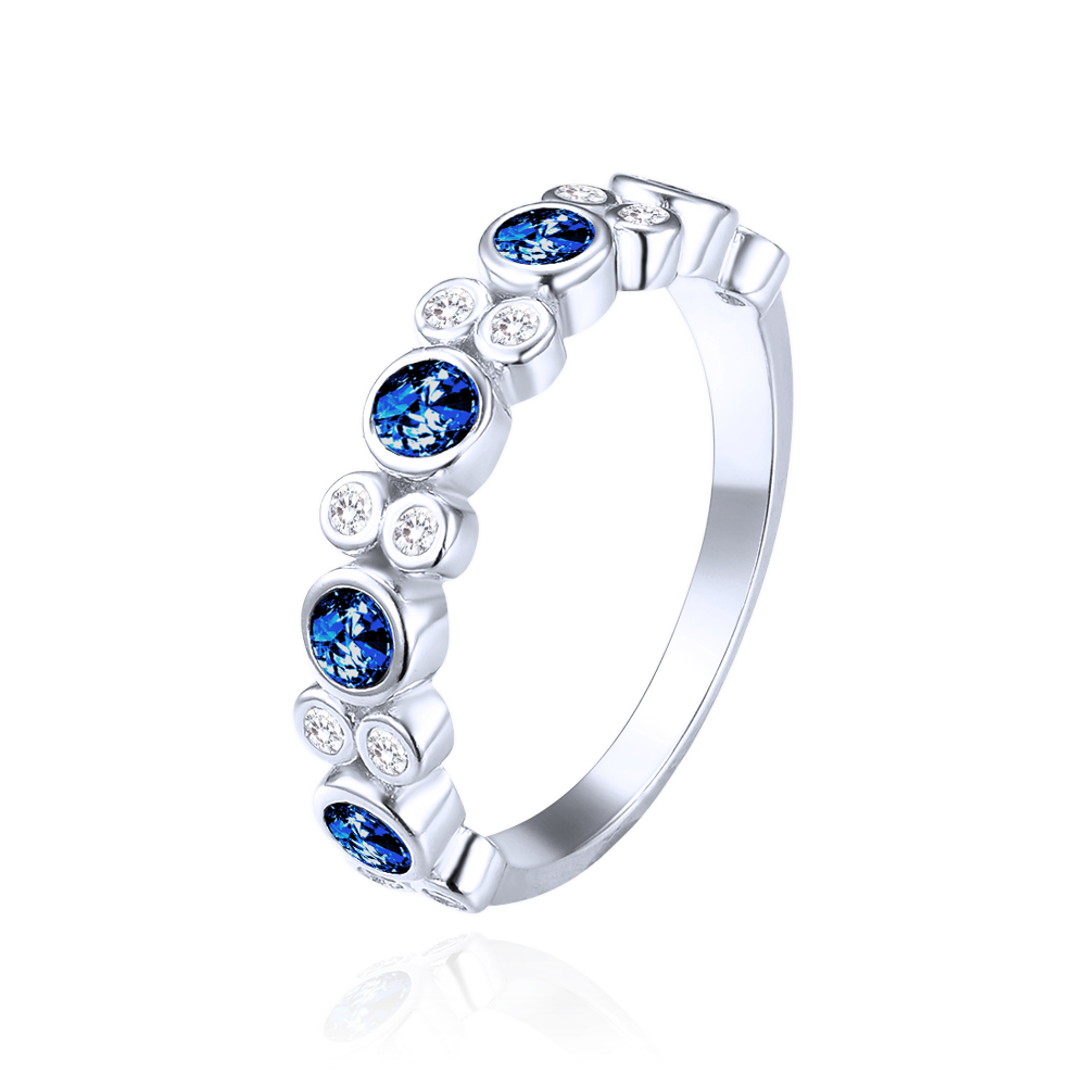 MINET Pierścien srebrny z białymi i granatowymi cyrkoniami wielkość 16