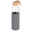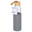 • Szklana butelka w zestawie z silikonowym pokrowcem. Idealna na wodę oraz inne napoje. Wyposażona w nakrętkę z uszczelką, więc nadaje się do transportu.