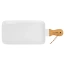 - Wykonany z porcelany - Talerz wykonany z najwyższej jakości porcelany w białym kolorze. Wyposażony w uchwyt wykonany z drewna bambusowego. Talerz jest wytrzymały i solidny.