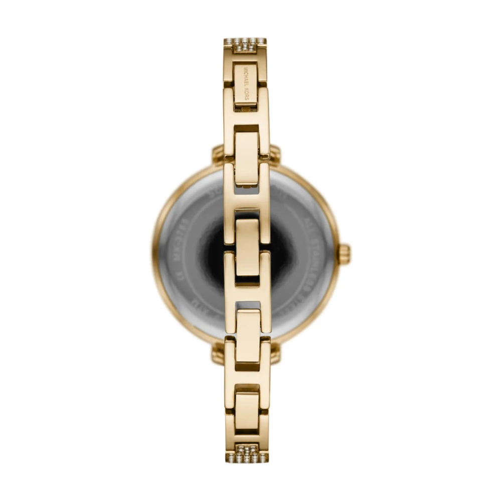 Zegarek Damski Michael Kors Jaryn MK3784 to stylowy, klasyczny i elegancki model dla każdej kobiety. Zegarek ten został wykonany w całości ze stali szlachetnej w kolorze złotym, co gwarantuje wieloletnią odporność na zniszczenie. Za niezawodne działanie urządzenia odpowiada dokładny mechanizm kwarcowy zasilany baterią.