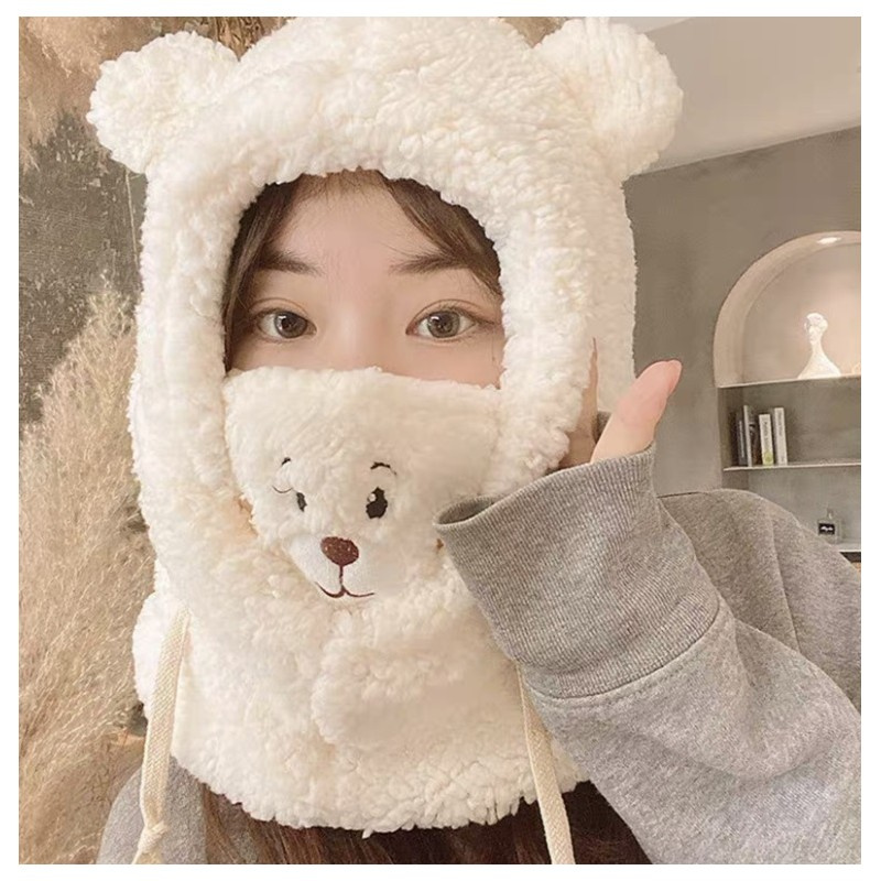 Wysokiej jakości czapka ciepła kaptur damski z misiem i uszami 2w1 wykonana została w 100% z poliestru.