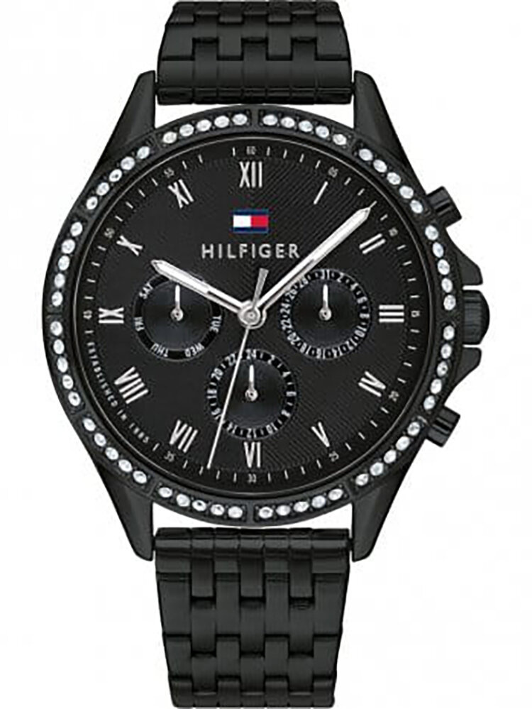 Zegarek Tommy Hilfiger 1782144 Ari to elegancki damski czasomierz zasilany niezawodnym kwarcowym mechanizmem. Koperta oraz bransoleta zostały wykonana ze stali szlachetnej, co gwarantuje jej wieloletnią odporność na zniszczenie. Całość uzupełnia czytelna czarna tarcza z wyznacznikami godzin w postaci rzymskich cyfr.