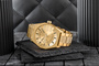 Nosząc ten model, czujesz, że czas pracuje na Twoją korzyść – każda sekunda to krok w stronę sukcesu. Jego złota, geometryczna forma to połączenie luksusu i bezkompromisowej siły. Każdy element, od grawerowanej koperty po masywną bransoletę, został zaprojektowany z myślą o mężczyznach, którzy cenią sobie nie tylko elegancję, ale i charakter. Tarcza w jednolitym złotym odcieniu hipnotyzuje swoją głębią, a trójwymiarowe cyfry i wyraziste indeksy nadają jej industrialnej surowości. To zegarek, który nie podąża za trendami – on je wyznacza. Każda sekunda odmierzana na jego tarczy przypomina, że sukces to kwestia pewności siebie i konsekwencji w działaniu. To nie jest zegarek dla każdego – to manifest męskiego stylu, niezłomnej pewności siebie i gotowości na wyzwania, które czekają w przyszłości.