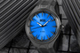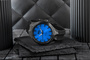 Futurystyczny, odważny, stworzony dla tych, którzy lubią wyróżniać się stylem. Jego elektryzująca, niebieska tarcza o promieniście szlifowanej powierzchni przypomina intensywną głębię oceanu, zmieniając swój odcień w zależności od kąta padania światła. Czarny, matowy bezel i ostro zakończone wystające indeksy tworzą dynamiczny, niemal trójwymiarowy efekt, nadając zegarkowi surowego, nowoczesnego charakteru.