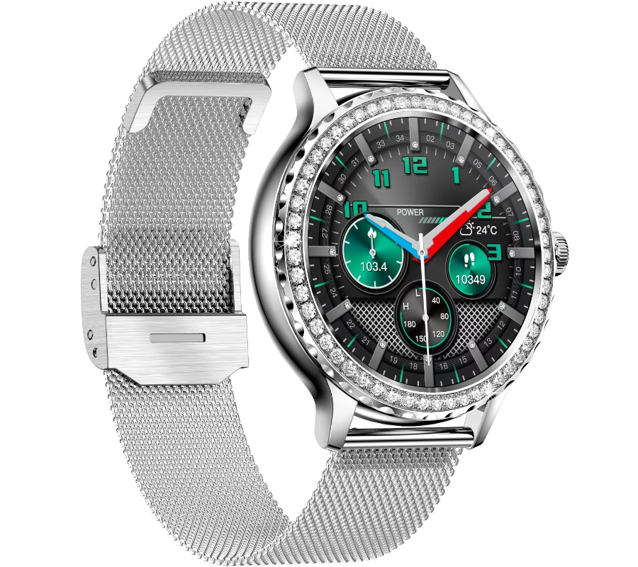 Dotykasz prostokątnego wyświetlacza MULTIdotyk TFT IPS full display i jednym ruchem wybierasz tarczę, która dziś najlepiej oddaje Twój nastrój – klasyczna elegancja czy odrobina nowoczesnego minimalizmu? Cyrkonie na kopercie delikatnie migoczą przy każdym ruchu, dodając subtelnego, biżuteryjnego uroku.