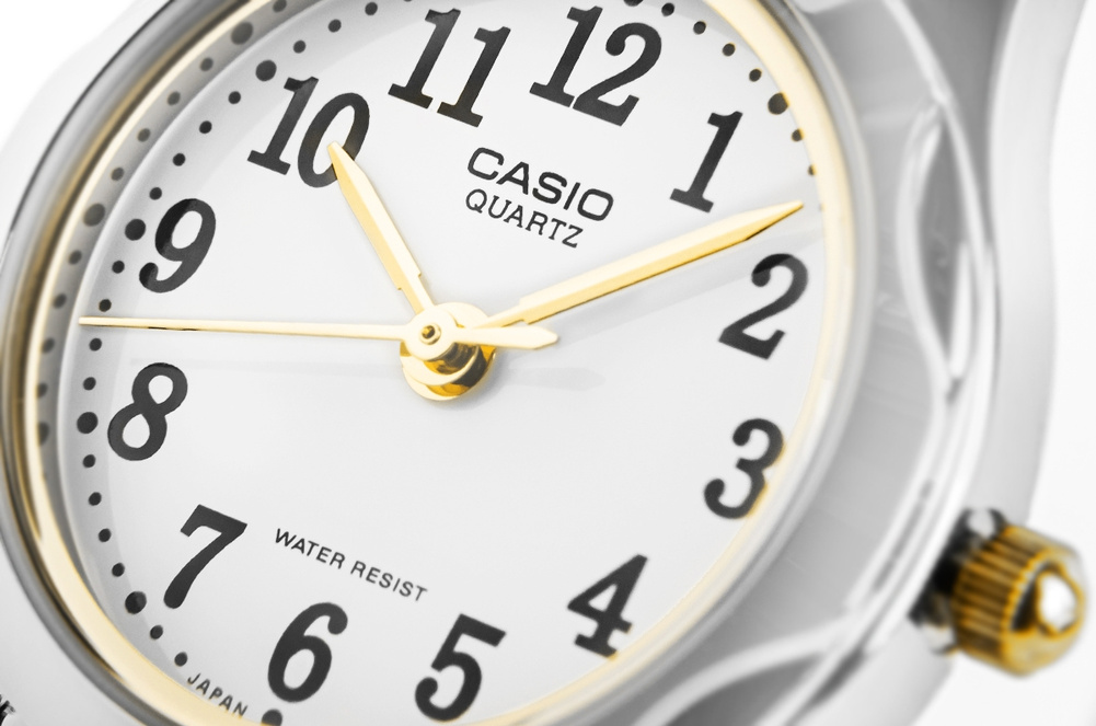 Ten model zegarka CASIO to idealny wybór dla kobiet o drobnej, delikatnej dłoni, subtelnie podkreślający jej smukłość i elegancję. Dzięki kompaktowej kopercie i lekkiej konstrukcji, nosi się go niemal jak biżuterię – jest wygodny, stylowy i niezwykle ponadczasowy. To doskonały prezent na Komunię Świętą – jego klasyczny design sprawia, że będzie pasował zarówno do młodej damy, jak i kobiety, która ceni sobie subtelną elegancję. Minimalistyczna tarcza w klasycznym białym kolorze z czytelnymi czarnymi cyframi zapewnia maksymalną przejrzystość, a srebrno-złote wykończenie dodaje mu luksusowego charakteru.