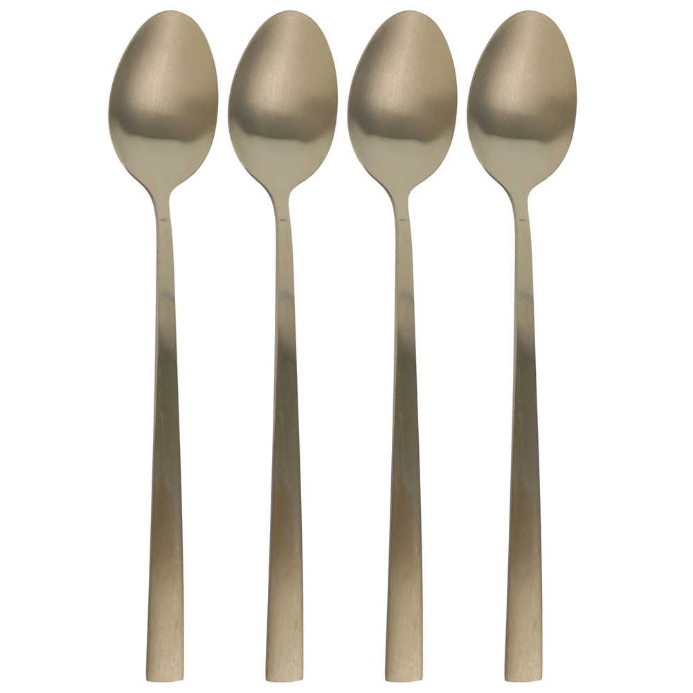 Zestaw czterech długich łyżeczek koktajlowych. Dzięki uniwersalnemu zastosowaniu są praktyczne i przydatne w każdym domu. Ich elegancki design sprawia, że pięknie prezentują się na stole. Doskonale sprawdzą się zarówno w domu, jak i w profesjonalnych kawiarniach czy restauracjach. Wyprodukowano zgodnie z europejskimi standardami.