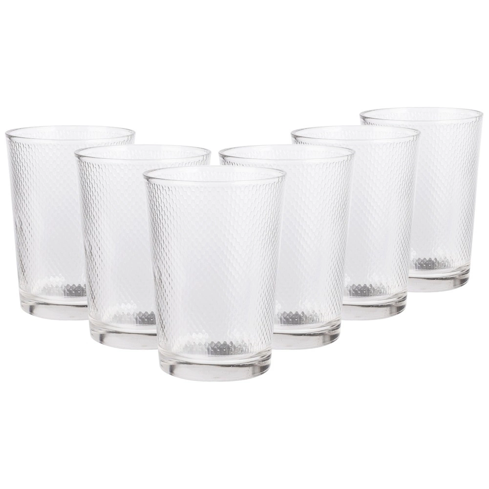 - Zestaw 6 szt. szklanek o pojemności 425 ml - Zestaw sześciu szklanek do napojów o pojemności całkowitej 425 ml. Wysokość każdej szklanki wynosi 12 cm, a średnica 9 cm.
