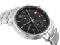 Zegarek męski Tommy Hilfiger Daniel 1710413 to model kwarcowy zasilany baterią, który charakteryzuje się eleganckim designem. Posiada okrągłą kopertę ze stali szlachetnej w srebrnym kolorze, w której znajduje się czarna tarcza z sub-tarczami datowników dni tygodnia oraz miesiąca. Indeksy i wskazówki na tarczy zapewniają łatwość odczytu. Zegarek jest doskonałym wyborem do codziennego użytku, a jego srebrna stalowa bransoleta z pewnością przyciągnie wzrok. Wodoszczelność na poziomie 50 m oznacza, że zegarek jest odporny na większe zachlapania, takie jak podczas mycia rąk czy korzystania z prysznica.