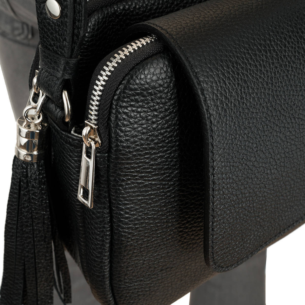 • Elegancka torebka skórzana Canaletto z klapką na magnes, ozdobnym frędzlem i srebrnymi detalami. Trzy kieszenie, regulowany pasek i najwyższa jakość wykonania z naturalnej skóry. Polski produkt stworzony z dbałością o detale!