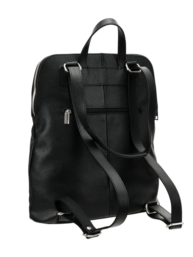 Torbo-plecak został uszyty z naturalnej skóry groszkowanej, która wyróżnia się wyjątkową trwałością i odpornością na codzienne użytkowanie. Jej subtelna faktura nie tylko prezentuje się elegancko, ale również jest praktyczna i łatwa w pielęgnacji.