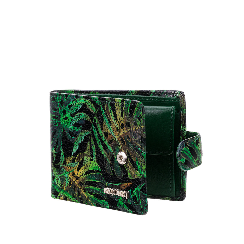 Wykonany z zielonej skóry naturalnej, portfel wyróżnia się trwałością i oryginalnym wyglądem. Kolorowa skóra dodaje mu unikalnego charakteru, nadając Twoim codziennym stylizacjom nowoczesnego akcentu. Skóra naturalna jest przyjemna w dotyku, odporna na codzienne użytkowanie i z czasem nabiera jeszcze większego uroku, co sprawia, że portfel będzie towarzyszył Ci przez lata.