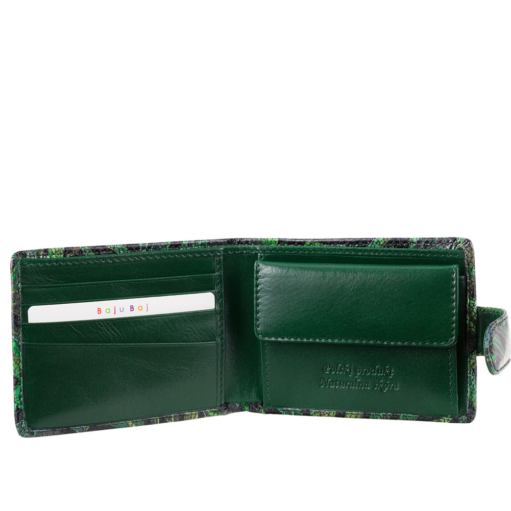 Portfel marki BajuBaj, wykonany z kolorowej, zielonej skóry naturalnej, to doskonały dodatek dla każdej kobiety.