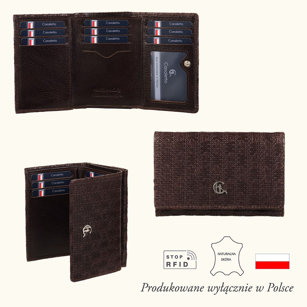 Każdy portfel Canaletto powstaje w rodzinnej manufakturze, gdzie tradycyjne rzemiosło łączy się z nowoczesnymi technologiami. Precyzyjne wykonanie, najwyższej jakości materiały i dbałość o detale sprawiają, że jest to produkt stworzony na lata.
