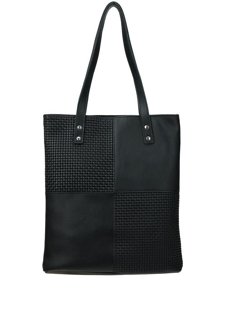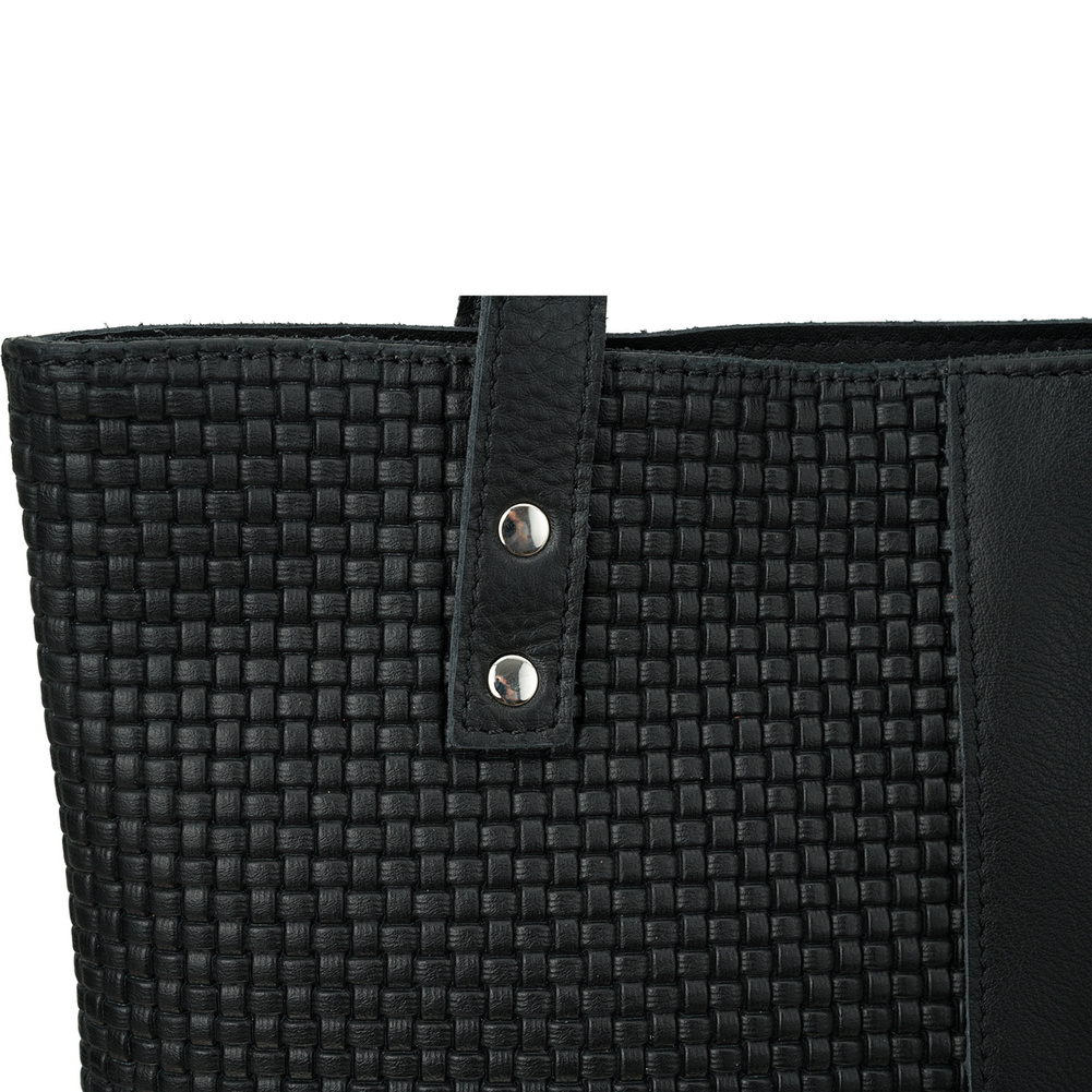 - Elementy tłoczone na wzór plecionki z przodu torebki,
