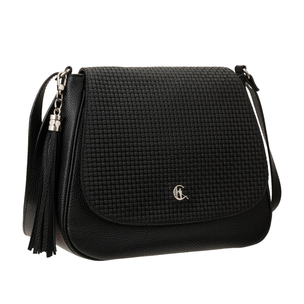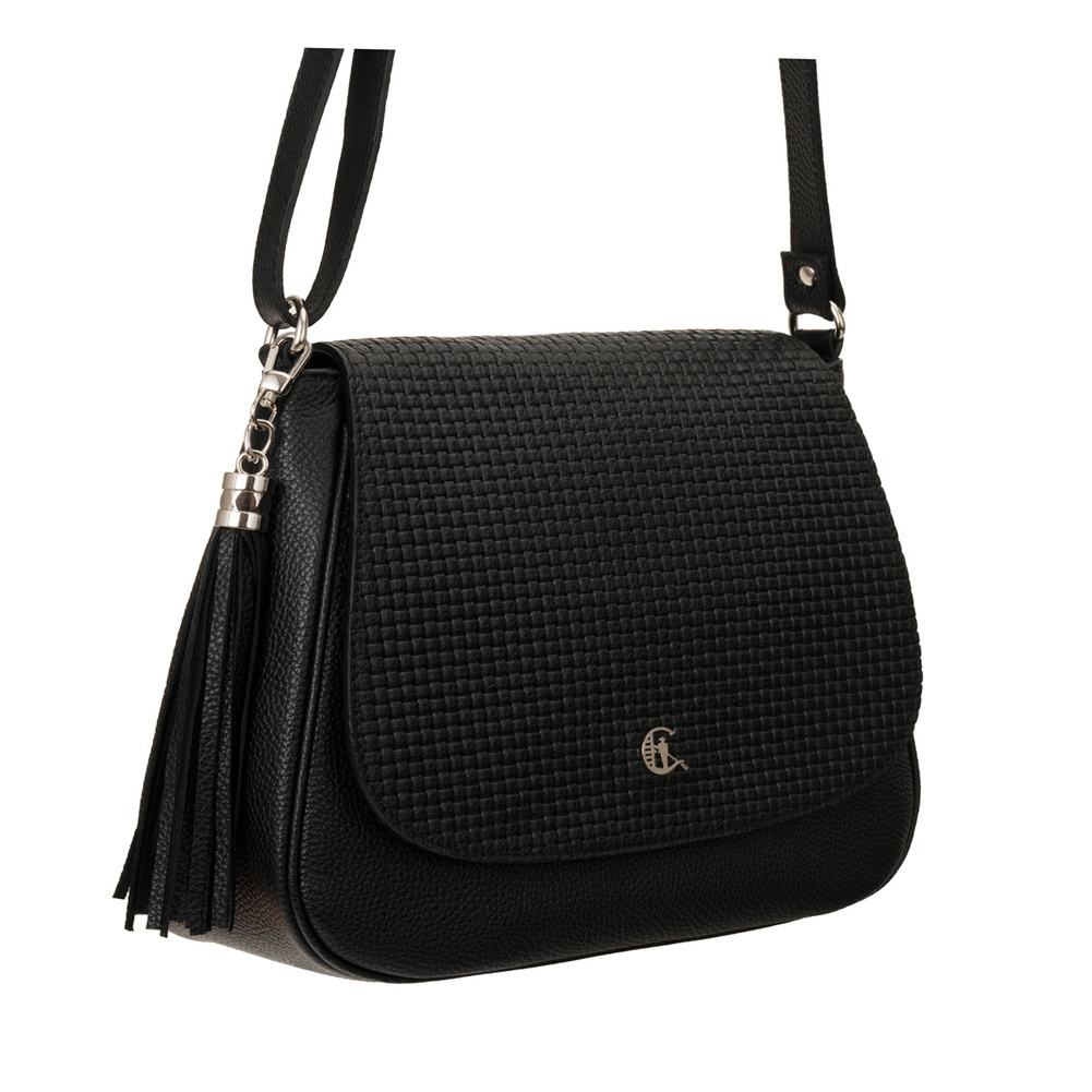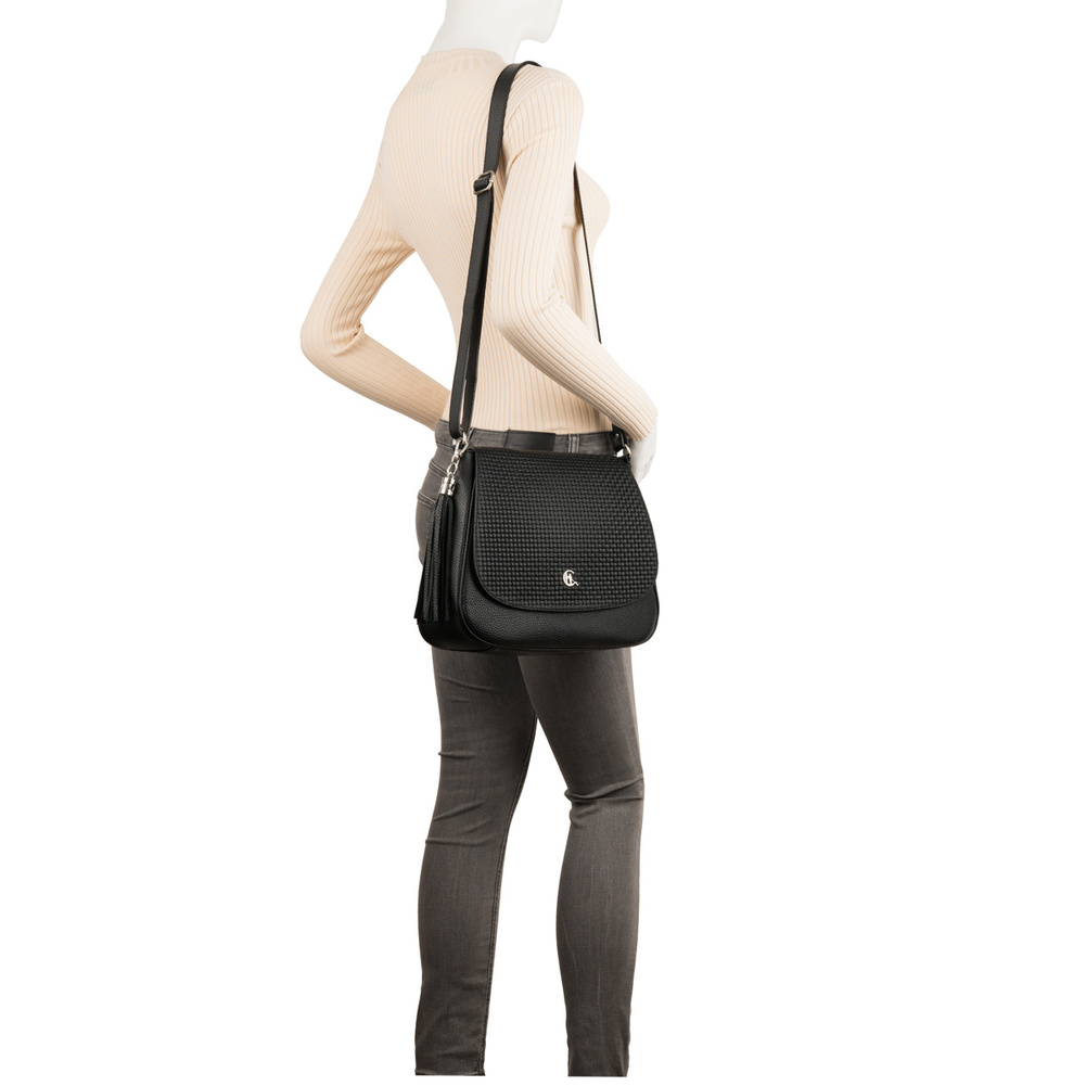Wykończenia w kolorze srebrnym dodają torebce nowoczesnego i eleganckiego charakteru. Ozdobny frędzel jest subtelnym, ale efektownym detalem, który uzupełnia jej klasyczny design. Regulowany pasek umożliwia noszenie torebki na ramieniu lub w stylu crossbody, co zapewnia wygodę i funkcjonalność.