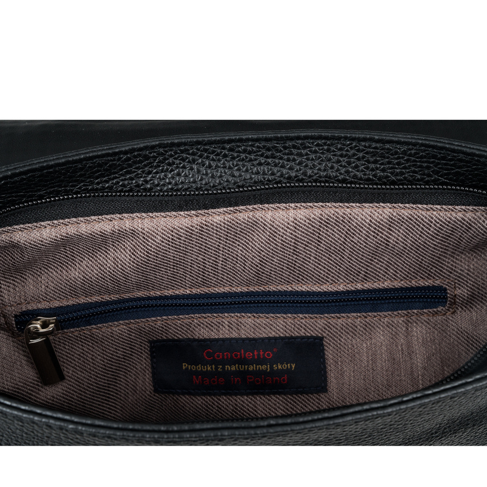 Torebka została wykonana z naturalnej skóry licowej groszkowanej, która charakteryzuje się delikatnie fakturowaną powierzchnią. Jest nie tylko estetyczna, ale także wyjątkowo odporna na zarysowania i codzienne użytkowanie. Klapka z tłoczeniem plecionki to detal, który nadaje jej niepowtarzalnego uroku, łącząc klasykę z nowoczesnością.