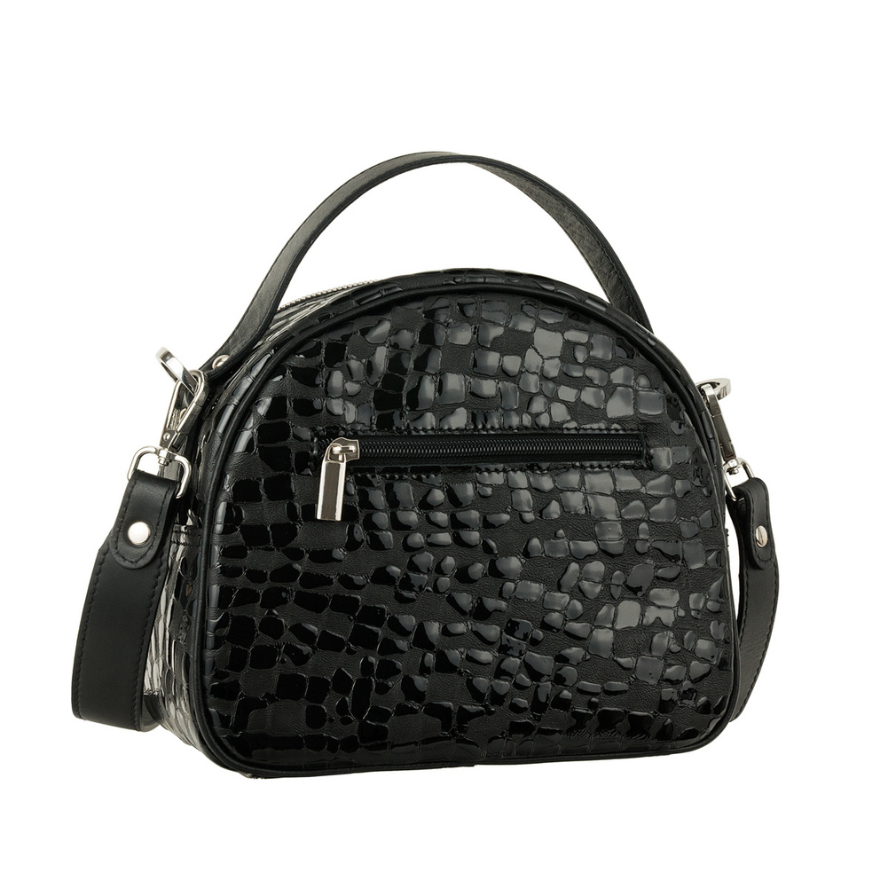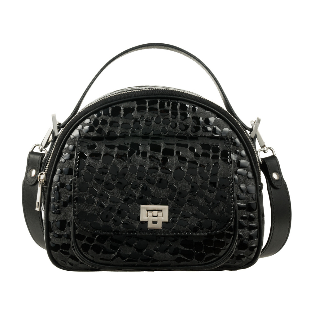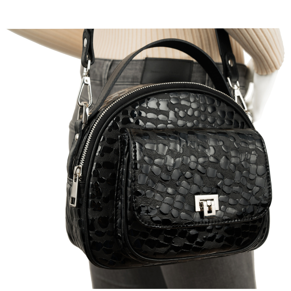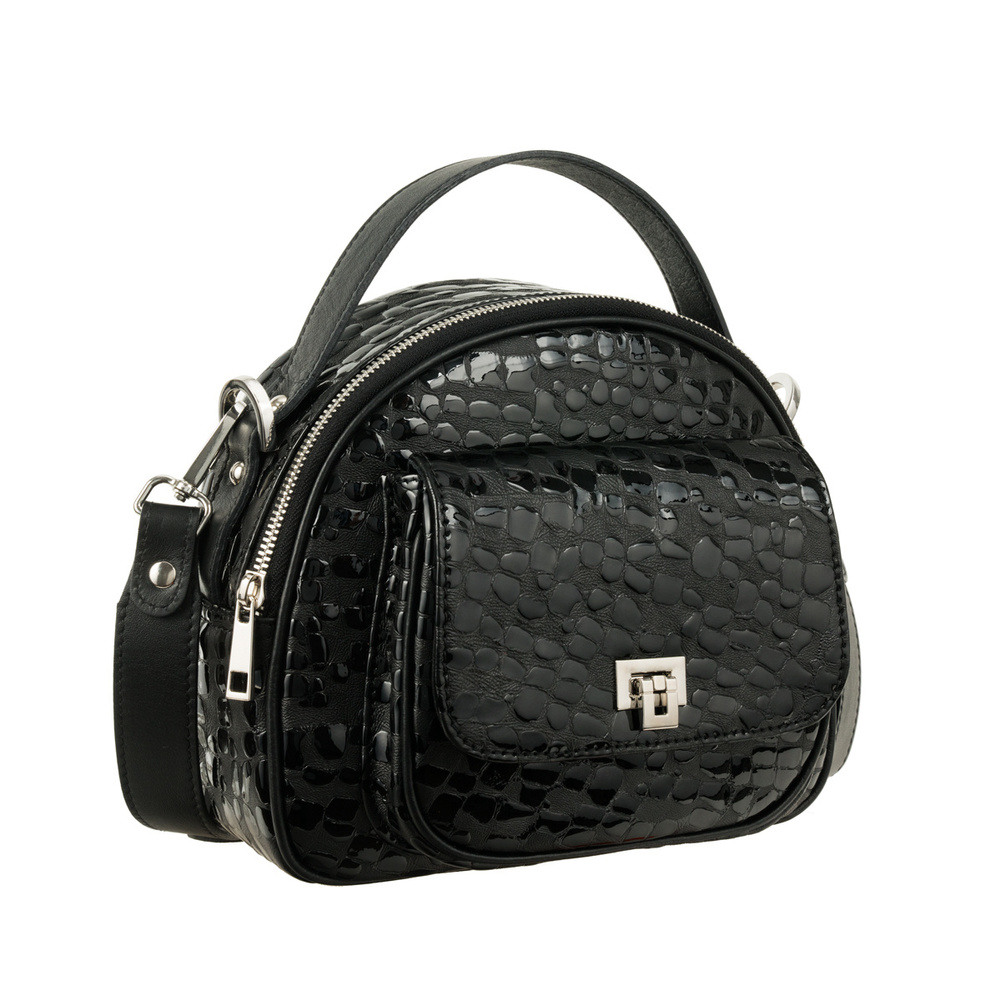 - Solidna skórzana rączka umożliwia noszenie torebki w dłoni.