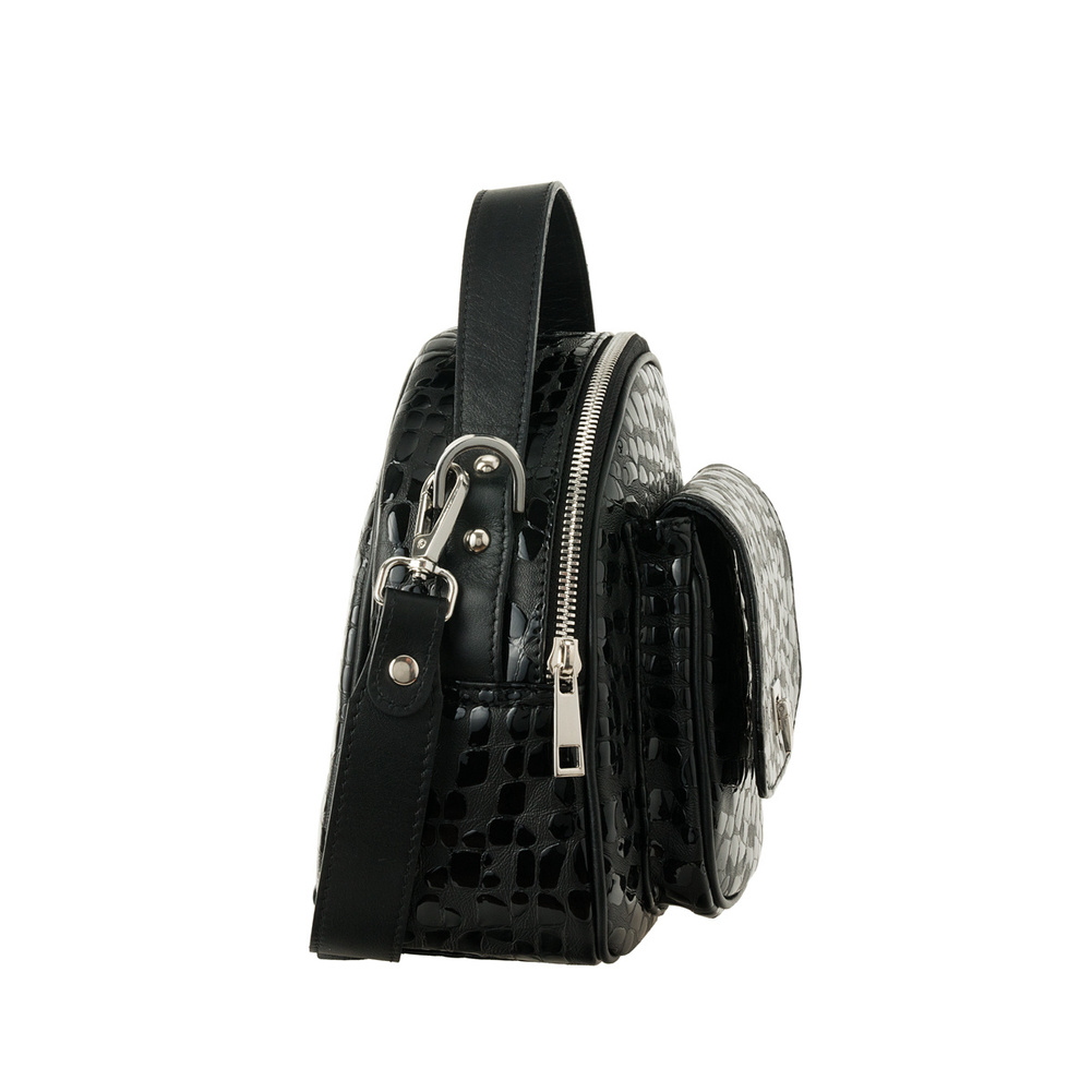 Wykonana z najwyższej jakości naturalnej skóry licowej, której powierzchnia wyróżnia się fakturą subtelnych kropli. Ten wyjątkowy wzór dodaje torebce głębi, podkreślając jej luksusowy charakter. Dzięki starannie dobranym materiałom kuferek zachowuje swój elegancki wygląd przez lata.