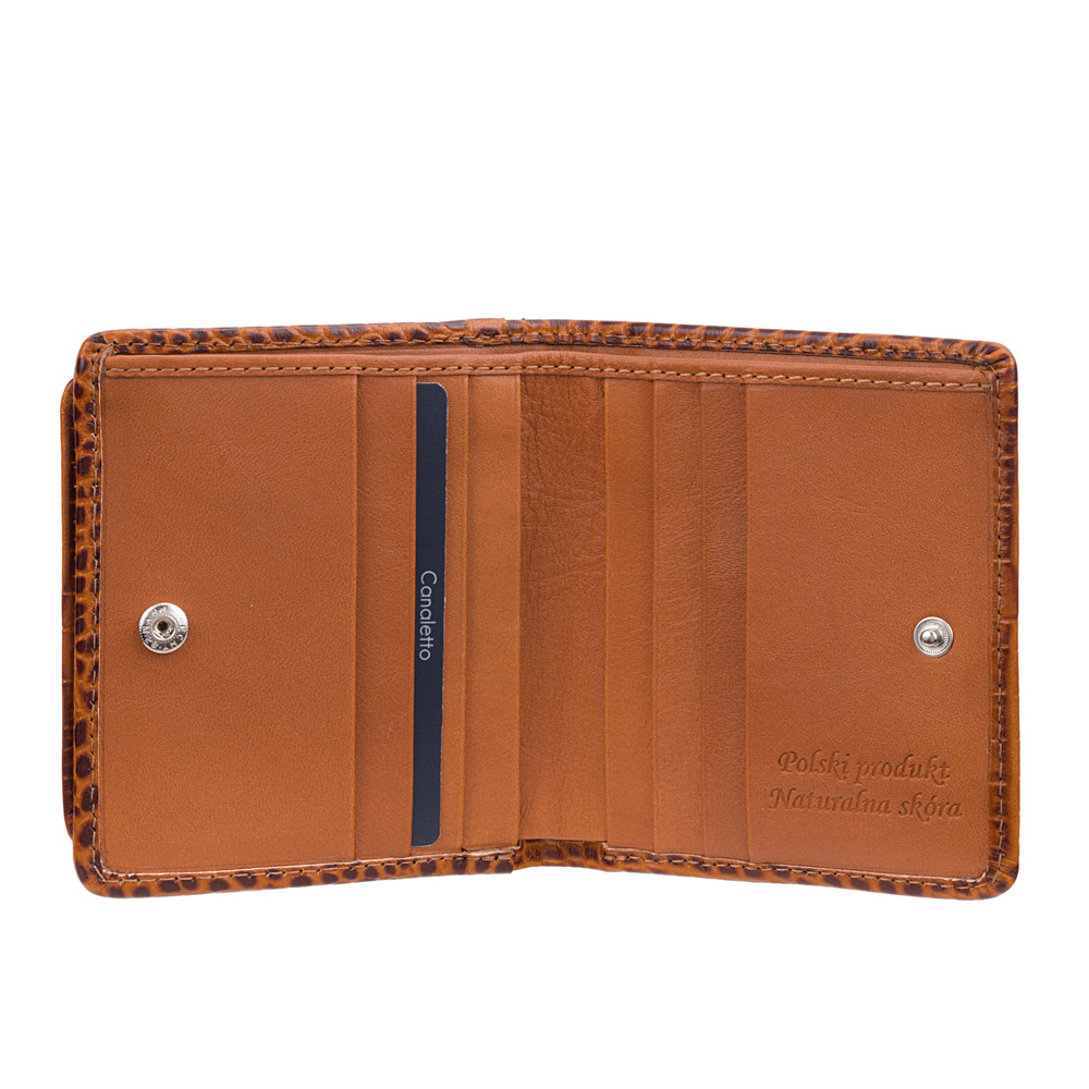 Portfel Canaletto to nie tylko praktyczny dodatek, ale także symbol elegancji i dobrego stylu. Wykonany z naturalnej skóry licowej z wzorem krokodyla, wyróżnia się unikalną fakturą i ponadczasowym charakterem. Detale zostały dopracowane z najwyższą precyzją, a metalowa sygnatura Canaletto podkreśla wyjątkowy styl tego modelu.